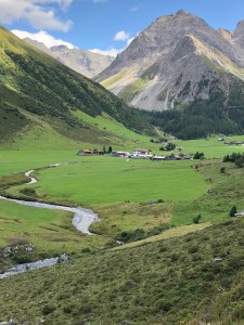 Also heute wollten Claudia und ich es aber richtig wissen und die Etappe 15 über die Tällifurgga laufen. Im stilechten Walserhus haben wir super gut geschlafen, was sicher am Duft des Arvenholzes lag. Das romantische Sertigtal mit dem Wasserfall weiter hinten (den haben wir leider nicht gesehen) gilt als Oase für Ruhe und Erholung und ist Ausgangspunkt zu mehreren Wanderungen.