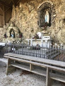 Ansonsten konzentrierte ich mich nur aufs Gehen und dachte dabei an die zehn Gebote für Pilger, die ich vor ein paar Tagen gelesen habe: “ geh; geh langsam; geh leicht; geh einfach; geh alleine; geh lange; geh achtsam; geh dankbar; geh weiter; geh mit Gott“ und eh ich mich versah, kam ich zur Abzweigung zur Lourd Grotte etwas abseits der Fahrstrasse.