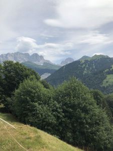 Der tolle Panoramablick auf die Kalkwände der Sulzfluh und der Drusenfluh war das noch wert. Auch von der Haltestelle (mit Brunnen) hat man einen guten Ausblick. Wie ich gelesen habe, ist das Berghaus Alte Post erst kürzlich erneuert und wieder in Betrieb genommen worden. Wie schön, dass es hier oben eine Einkehrmöglichkeit gibt, die es auch nicht Wanderern erlaubt, mit dem Mittagskurs von Schiers nach Schuders zu fahren, fein zu essen, kurz etwas zu laufen oder das Kirchlein zu besuchen und dann am späten Nachmittag wieder die Talfahrt anzutreten. Ich werde sicher wieder einmal das Schraubachtobel hochlaufen, bin dann gespannt, wie sich das Schwemmland wieder verändert hat. Vielleicht darf ich beim nächsten Mal auch das schöne Kirchlein besuchen, heute wurde mir das von einem recht „hässigen“ Hund leider verwehrt. 😦