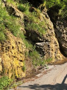 Die wenigen Leute, die in Grüsch aus der RhB Richtung Davos ausgestiegen sind, waren bald alle ausser Sichtweite, im Bus waren wir nur noch zu zweit. Nach drei Minuten Fahrt stieg ich wieder aus und musste der Strasse Richtung Landquart für etwa einen Kilometer folgen, dabei überquerte ich die Bahngeleise, die Autobahn und die Landquart, bevor ich zur Teerstrasse nach Valzeina kam. Es muss eine alte und stillgelegte Fahrstrasse sein, denn sie ist für den Fahrverkehr gesperrt und schon etwas von Unkraut überwuchert, doch sonst ganz nach meinem Geschmack, sehr stimmungsvoll führt sie entlang Felsen und dem Schranggabach nur leicht ansteigend und am Schatten aufwärts. Ich war sogleich beindruckt von den moosüberwachsenen Steinen, an denen Wasser herab lief und dabei eine eigene Landschaft kreierten.