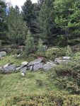 Wir durchquerten eine Weide mit Pferden und kamen bald zum wunderschönen Arvenwald, da beginnt eigentlich der schönste Teil der Wanderung, obwohl, dieser bis hierher ebenfalls toll war. Ein angenehmer erdiger Geruch empfängt uns, andächtig liefen wir durch diesen mystischen Wald im Wissen, dass einige dieser knorrigen Arven schon mehrere Hundert Jahre alt sind. Ihre Rinde ist rau und man kann ihre Stärke und Widerstandskraft direkt spüren. Man könnte in diesem Waldstück Zeit und Raum vergessen, das taten wir aber nicht, wir müssen den Bus in S-charl erreichen. Das sollte zwar zeitlich kein Problem sein, doch habe ich Maya noch von einer «edlen» Einkehrmöglichkeit vorgeschwärmt wo wir vor der Heimreise etwas trinken und ein Glacé essen könnten.