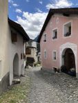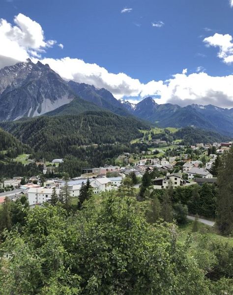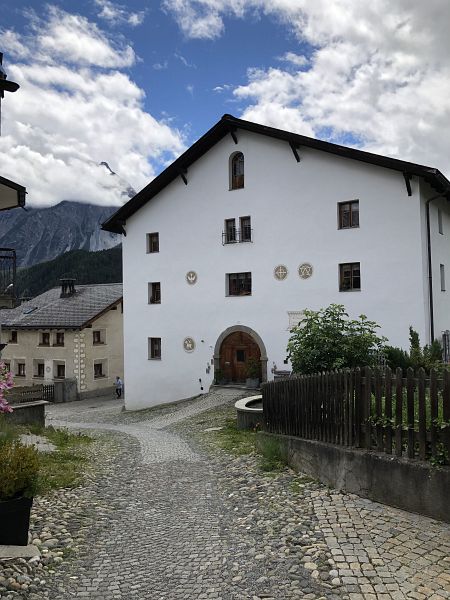 Das Oberengadin ist ein eher ebenes, hochalpines Tal und ist geprägt durch seine einmalige Seenlandschaft. Das Unterengadin weist ein deutlich grösseres Gefälle auf. Es ist enger und wilder als das Oberengadin. Diesen Wechsel konnte ich während der Fahrt gut beobachten. Nach Cinuos-chel beginnt das Unterengadin und inzwischen hellte sich der Himmel doch noch auf und die Sonne kam zwischen den Wolken hervor. Gegen halb zwei traf ich in Scuol-Tarasp ein.
