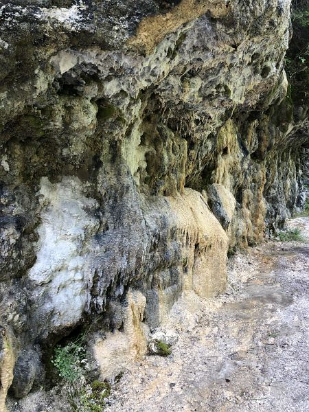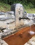 An jenem Tag kam ich in Genuss von Wasser aus der, Vi, der Clozza und der Sotsass Quelle, alle drei sind (Eisenhaltige) Calzium-Hydrogencarbonat-Säuerlinge. Ich habe von jeder ausgiebig gekostet und noch eine Flasche Clozza Wasser mit nach Hause genommen. Dieses konnte ich aus dem «Eichhörnlibrunnen» abfüllen. Als ich auf dem Bänkli daneben mein Mittagessen ass, sah ich, wie viele Leute in der kurzen Zeit kamen und gleich mehrere Flaschen damit füllten. Das Wasser hat einen starken metallenem Geschmack, ist es jedoch gut gekühlt, merkt man das weniger. Die Quellfassung befindet sich etwas weiter oben im Clozzatobel. Den kurzen Rundgang habe ich anschliessend noch unter die Füsse genommen und war sehr beeindruckt von dem Felsen mit den starken Kalkausblühungen, an dem ich vorbeikam. Bald kam ich zur Brücke und überquerte die Clozza. Die Quelle befindet sich gleich auf der anderen Seite. Man kann den Metalldeckel hochheben und durch das Glasfenster hinunterschauen. Anschliessend führt ein steiler Trampelpfad aus dem Tobel wieder hoch zu einer Weide. Ich lief noch ein wenig weiter Richtung Sent zum Sotsass Brunnen, wovon ich auch noch etwas trank.
