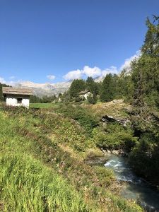 Bald durfte ich wieder auf einen einfach zu begehenden Bergwanderweg ausweichen, der etwas am Hang entlang durch den Wald führt. Das Tal ist breit, die Fedacla, die durch die vielen Quellbäche von den Gletschern gut mit frischem Wasser versorgt wird, entwässert die Ebene und mündet später in den Inn und danach in den Silvaplanersee.