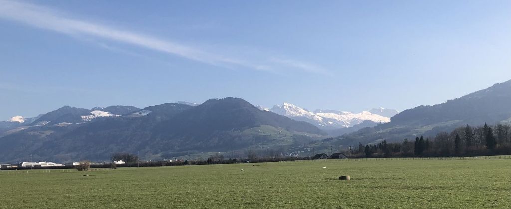 Ein sonniger Tag im März ermunterte mich, meine Wanderung rund um den Zürichsee fortzusetzen. Ein weiteres Mal setzte ich mich in die S7 und fuhr bis Rapperswil. Dort stand die S6 Richtung Jona und weiter ins Glarnerland schon bereit. Doch statt in Jona Blumenau auszusteigen, fuhr ich bis Schmerikon weiter, ich wollte heute bis zur anderen Seeseite hinüber und musste daher das Wegstück etwas kürzen. Nochmals genoss ich die Anfahrt dem Ufer der «Goldküste» entlang, mit dem Blick in die Glarner Bergwelt, bald schon werde ich zu meinen jeweiligen Ausgangsorten auf der anderen Seeseite anfahren müssen.