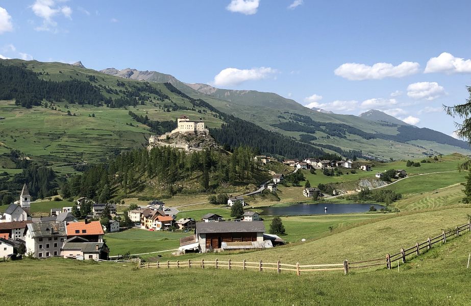 Als ich am Vortag von Ardez nach Scuol wanderte und kurz vor Ftan auf einem Bänkli einen Halt machte, konnte ich direkt zum Schloss hinüberblicken. Während meinem früheren Aufenthalt im Unterengadin bin ich bereits durch Avrona und Vulpera gewandert, diesmal wollte ich daher gerne auch noch nach Tarasp und hinauf zum Lai Nair.