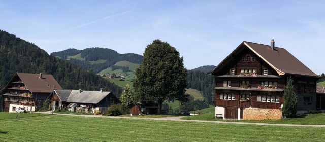 Den Wegweisern folgend gelangte ich zum Dorfplatz und betrachtete die für das Appenzell typischen Häuser. Dabei lief ich eine Weile im Kreis umher, bis ich endlich wieder auf die richtige Spur kam, eine Baustelle verdeckte die Markierungen oder sie wurden entfernt. Doch nach einer guten Stunde lag der Ort Herisau hinter und unter mir, ich lief über Weiden und später durch einen Wald.