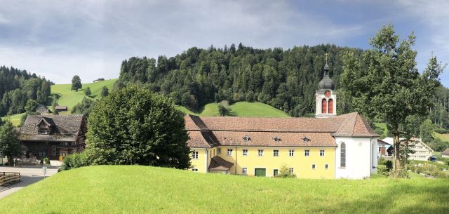 Nachfolgende Bilder zeigen: Kloster St. Peterszell; Haus in St. Peterszell; Aussicht ab Schwellbrunn Risi; Häuser in Hofstetten