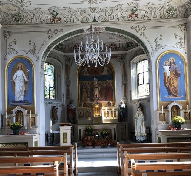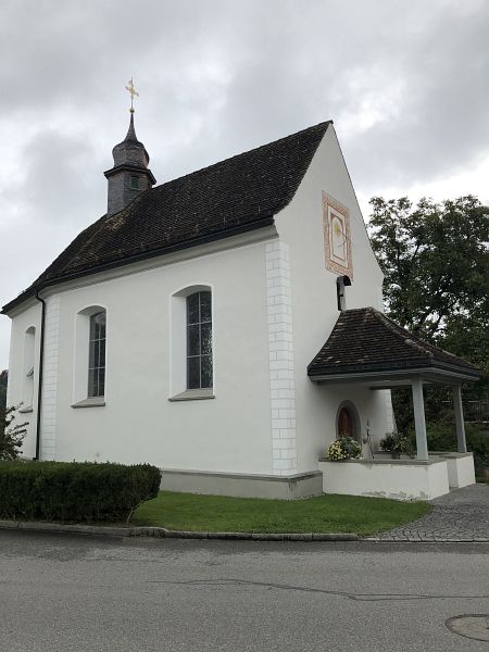In Rüeterswil besuchte ich die der heiligen Ursula geweihte St. Ursula-Kapelle. Der Online Archivkatalog des Staatsarchivs St. Gallen meldet, dass die Kapelle erstmals im 1696 erwähnt war und zuletzt im 1984 einer Gesamtrestaurierung unterzogen wurde. Ebenfalls aus dem Internet entnahm ich die Information, dass Rüeterswil im Mittelalter die stärkste und bedeutendste Siedlung im Gebiet Oberricken war. Später gewann der Ort St. Gallenkappel immer mehr an Bedeutung. Dieser entstand rund um die neu errichtete Barockkirche die an jener Stelle erbaut wurde, an der, gemäss Urkunde, einst das Galluskloster gestanden haben muss.