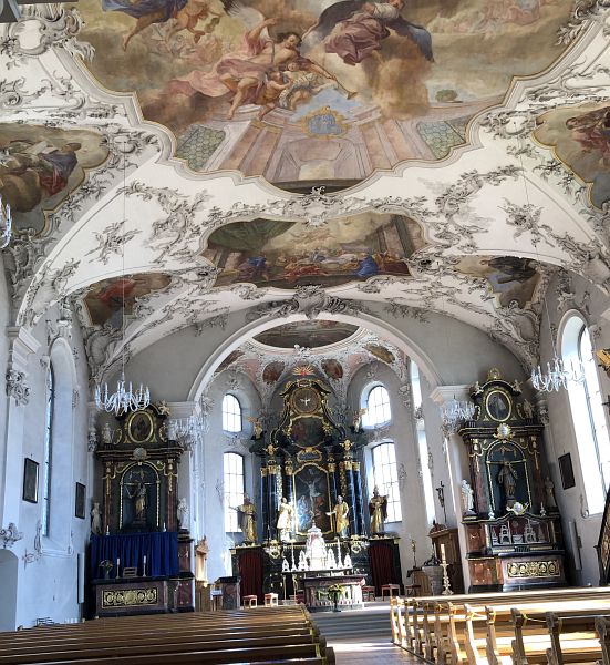 Bald geht es etwas steiler abwärts und ich komme an einem Schulhaus vorbei ins Zentrum von dem Dorf mit dem schön klingenden Namen St. Peterszell. Der Ortsname geht auf die klosterähnliche Einrichtung zurück, diese soll ursprünglich eine Eremitensiedlung gewesen sein und wurde später erst als Kloster bezeichnet, hatte dann aber später nur noch den Rang einer Probstei.