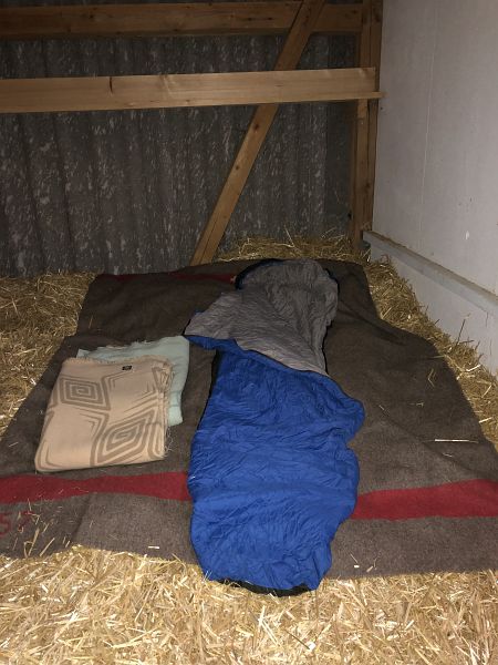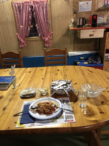 Nach dem warmen Abendessen, das ich ebenfalls vorbestellen konnte, wurde mein Abend jedoch eine recht kühle Angelegenheit, ich sass in Decken eingehüllt am Tisch und sah via Handy noch ein bisschen fern bevor ich mich ins Stroh legte.