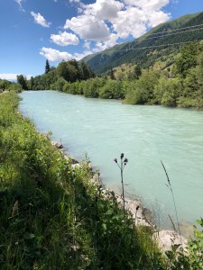 Weiter unten, auf einem Felsvorsprung, steht die nach einem Bergsturz errichtete Niklaus Kapelle. Ich verpasste es, dort etwas länger zu verweilen und lief gleich weiter abwärts und der Rhone entlang durch das Dorf Oberwald. Die Sonne wärmte schon ganz stark, als ich hinter dem Bahnhof den Geleisen entlang lief. Im Bahnhofbuffet kehrte ich ein und gönnte mir einen feinen Salatteller, der mich wieder zu Kräften brachte.