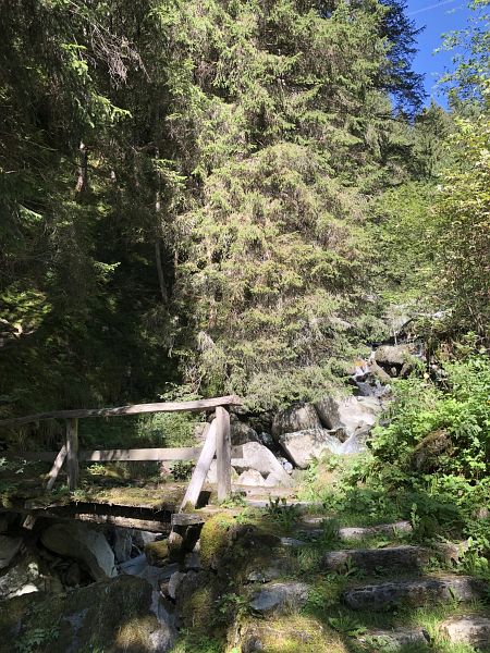 Gut ausgeruht und gestärkt durch das reichhaltige Frühstück machte ich mich am nächsten Morgen auf den Weg. Es sollen etwa vier Stunden reine Gehzeit werden. Zuerst einmal geht es über Wiesen ziemlich steil abwärts, die Fahrstrasse wird ein paarmal gequert, bis man durch die Weiler Dardin, Capaul, und Capeder, sowie das Dorf Schrans kommt.