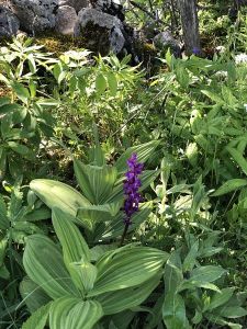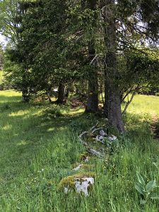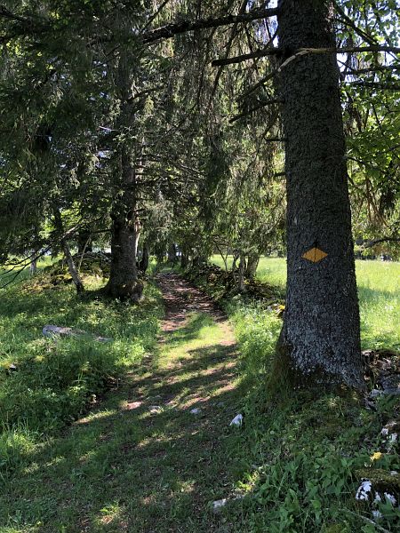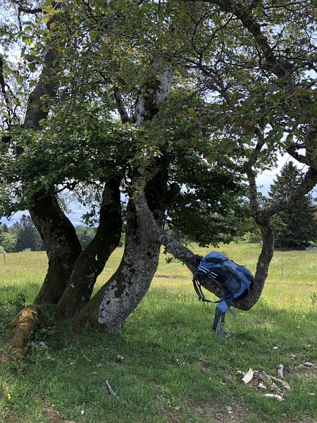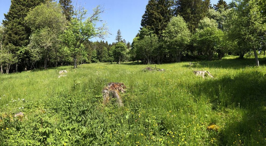 Durch Wälder und Weiden führt der Weg den Jurahöhen entlang und am Ende noch durch das Hochmoor La Sagne. Die noch ursprüngliche Landschaft mit den weiten Weideflächen soll die Besonderheit des Jura auszeichnen. Mit allen Sinnen stimme ich mich auf die kommenden Tage ein. Akustisch durch das Vogelgezwitscher und dem fernen Geläute der Kuhglocken und geschmacklich durch die unterschiedlichen Pflanzendüfte, die mir immer wieder durch die Nase ziehen.