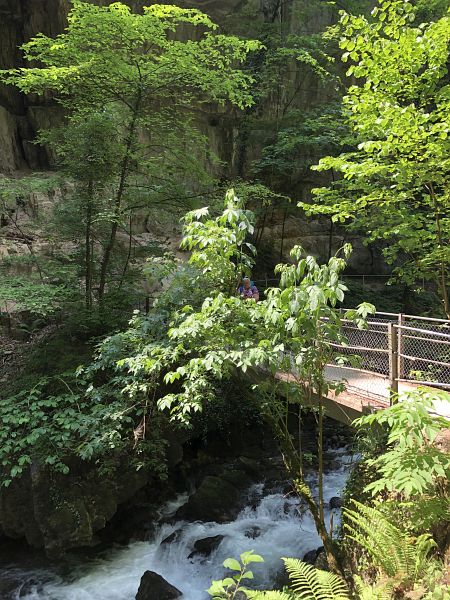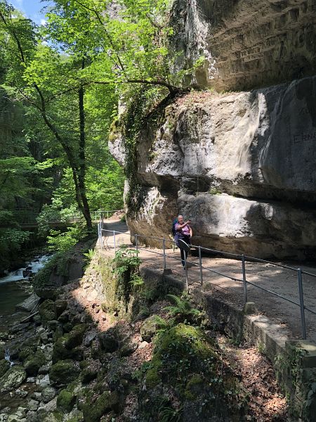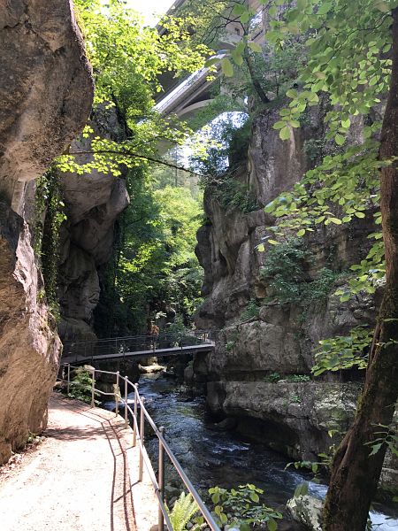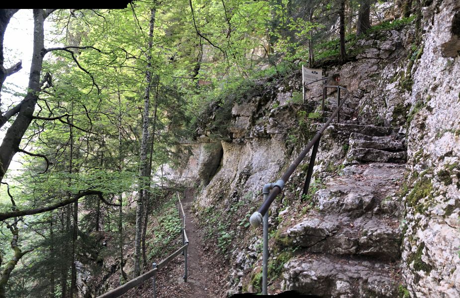 Der Gasthof am Eingang zur Schlucht hat Dienstag geschlossen, einen Laden oder Kiosk sucht man im Ort vergebens. Das Wegstück von der Bahnstation zur Schlucht ist nicht besonders interessant. Ich würde wieder den kurzweiligen und schönen Weg durch den Wald ab Evilard nehmen, sollte ich wieder einmal hierhin kommen.