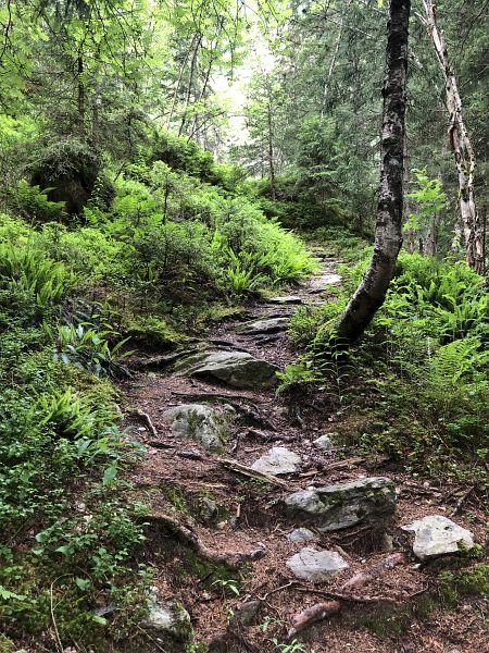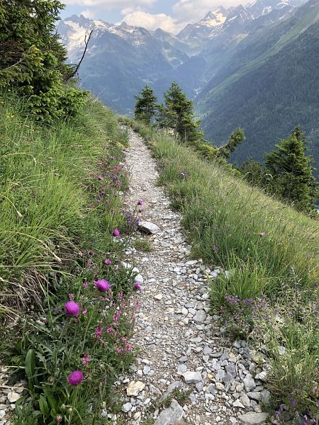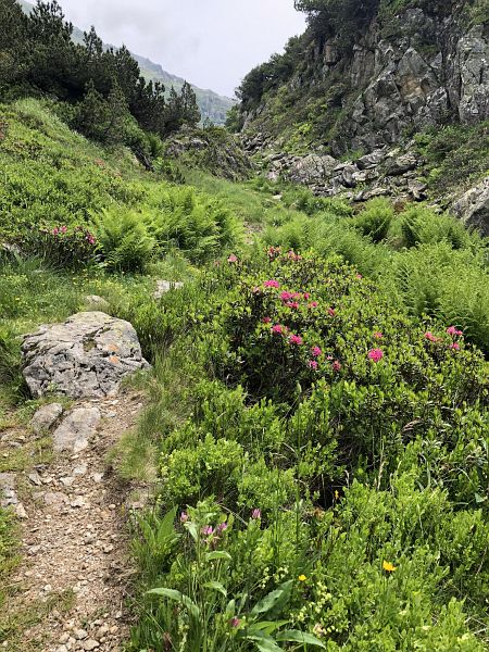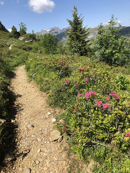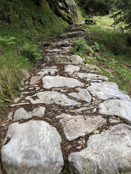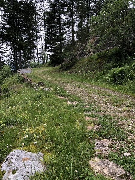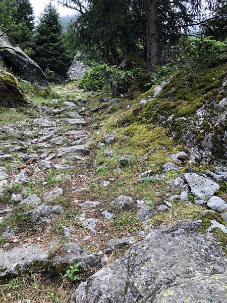 Vorsichtig, Kehre um Kehre nehmend, stieg ich ab, nahm mal die Wanderstöcke zu Hilfe, mal wieder beide Hände. (Daher leider keine Bilder, man schaue sich jene an, die in der SchweizMobil Karte hinterlegt sind)
