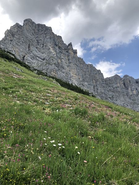 Früh am nächsten Morgen und ohne Frühstück habe ich mich auf den Weg gemacht. Der Himmel ist wolkenverhangen, die Luft frisch und leicht. Regen ist erst gegen Nachmittag zu erwarten. Schade nur, dass so die Gadmer Dolomiten nicht mehr zum Vorschein kommen.