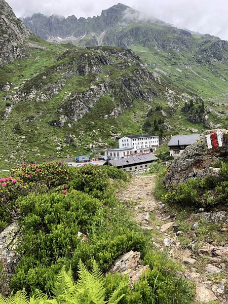 Die letzte Etappe, von Gadmen bis zur Passhöhe, wird mit gut vier Stunden reiner Gehzeit ausgeschrieben, doch sind nochmals über elfhundert Höhenmeter zu überwinden. Schon bei der Planung stand für mich fest, dass ich die letzte Etappe aufteilen und so besser auskosten möchte. So habe ich im Berghotel Steingletscher nochmals eine Übernachtung gebucht.