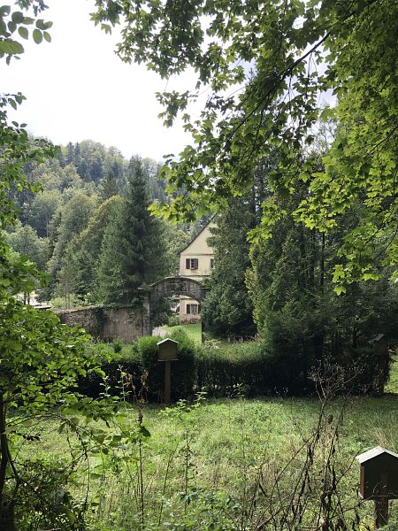 Bis zur Abfahrt des Buses, der mich nach Delémont zurückbringen soll, verblieben mir noch etwa zwei Stunden, so dass ich noch den See umrunden und das ehemalige Zisterzienserkloster, zumindest von aussen, ansehen konnte. Im Klostergarten fand ich auch eine Bank wo ich mein Mittagessen einnehmen konnte. Rastplätze und Sitzbänke sind im Kanton Jura, ausser in der Nähe von grösseren Orten, eher eine Rarität.