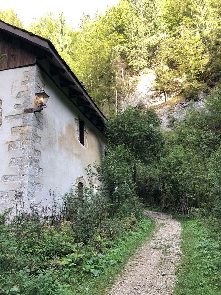 Die letzte und längste Etappe der fünftägigen Jurawanderung steht bevor. Zu meiner grossen Überraschung war die Bäckerei mit Tearoom Roelli in Glovelier am Sonntagmorgen um sieben bereits offen. So konnte ich mir ein Sandwich kaufen, um meinen Proviant etwas aufzubessern. Das Frühstück war etwas dürftig, das Brot ging vergessen.