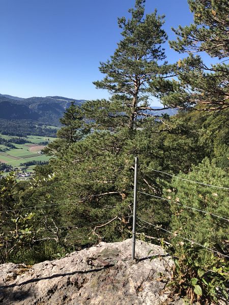 Gut gestärkt sind die letzten Höhenmeter gut zu meistern und man erreicht etwa eine Stunde später den Gipfel. Der Abstieg nach Grandval führt nochmals durch eine Schlucht. Die Haltestelle liegt etwas einsam in der Landschaft, Sitzbänke oder eine Einkehrmöglichkeit sucht man dort vergebens.