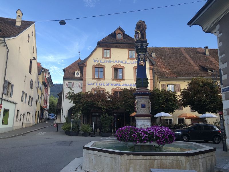 Mit dem Regio Express kurz nach acht bin ich von Moutier nach Bassecourt angereist. Dort hätte ich bei der Kirche eine gute halbe Stunde warten können und dann, jedoch ohne zeitliche Einsparung, den Bus nach Berlincourt nehmen. Ich zog es jedoch vor, gleich loszulaufen