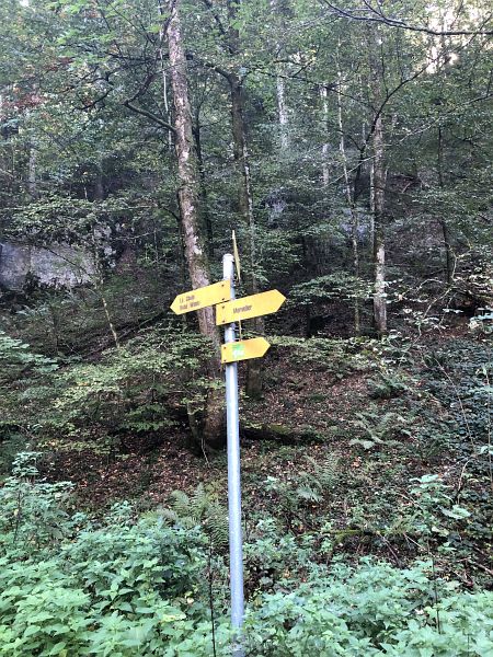 Wanderung 1: Combe Fabet nach Champoz, dann entlang Route 80 (Via Jura) durch les Gorges de Court nach Moutier (Mittwoch, 20. September 2023)