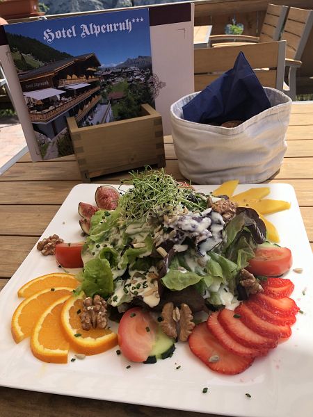 Im Dorf Mürren am Fusse des Schilthorns angekommen steuerte ich direkt auf ein Restaurant mit Aussichtsterrasse zu und ass einen Salat zu Mittag. Danach spazierte ich noch ein wenig durchs Dorf bevor ich im Hotel Jungfrau mein Zimmer bezog und den restlichen Nachmittag mit Lesen verbrachte.