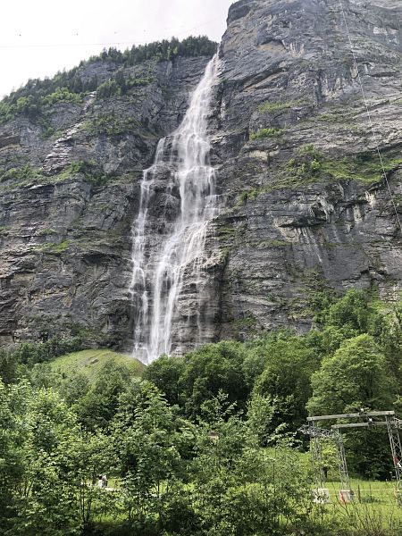 Nach einem feinen Mittagessen gleich neben der Schilthornbahn war es dann mit Idylle und Ruhe vorbei, es ging im Gedränge mit der Gondel hinunter nach Gimmelwald und Stechelberg, dort mit dem Postauto nach Lauterbrunnen und dann weiter mit der Bahn.