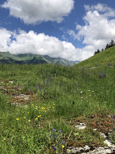 Am Nachmittag kam doch noch die Sonne hervor, es wurde gleich wieder warm und schwül. Ein schöner Panoramaweg führt von Saanen zurück nach Schönried und da es auch noch etwas aufwärts geht, kam ich doch noch zu etwas sportlicher Bewegung.