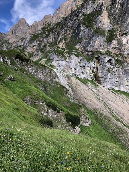 Das Alpbeizli Blacktenalp hatte Ruhetag, so begnügte ich mich mit einem Schluck Wasser aus meiner Trinkflasche. Bald kam ich zur Abzweigung Führenalpbahn. Ein breiter Weg würde dem Hang entlangführen.