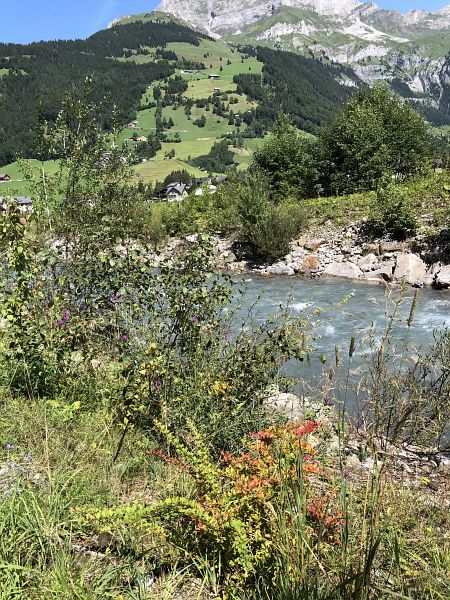 Weiter unten wählte ich den Weg im Wald hinter dem Golfplatz und entschied, den Tag lesend am Fluss und im Schutze von schattenspendenden Bäumen zu verbringen statt an stark frequentierten Orten wie zum Beispiel auf Brunni. Zudem war noch ein katholischer Feiertag was auch die lokale Bevölkerung aus ihren Häusern lockte.