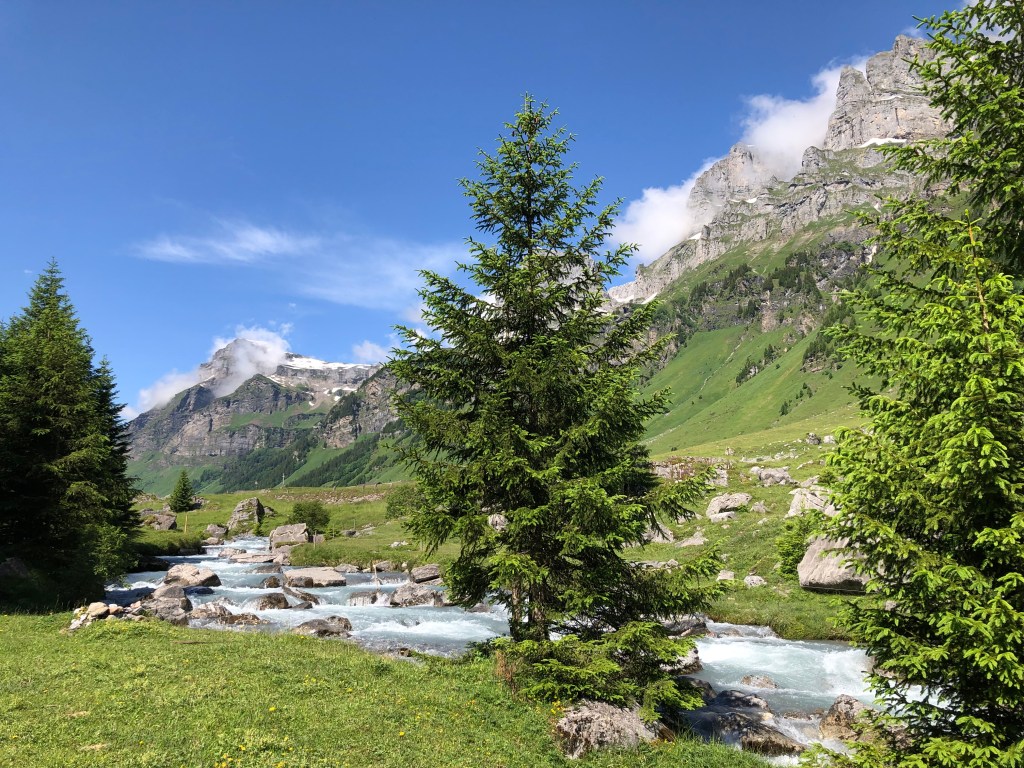 Mit dem Bus ab Linthal ist es möglich bereits morgens um neun Uhr in Urnerboden einzutreffen und gleich zum Flätschbach hinunter zu laufen. Dieses Wegstück gefällt mir von der ganzen Wanderung bis Braunwald am besten.