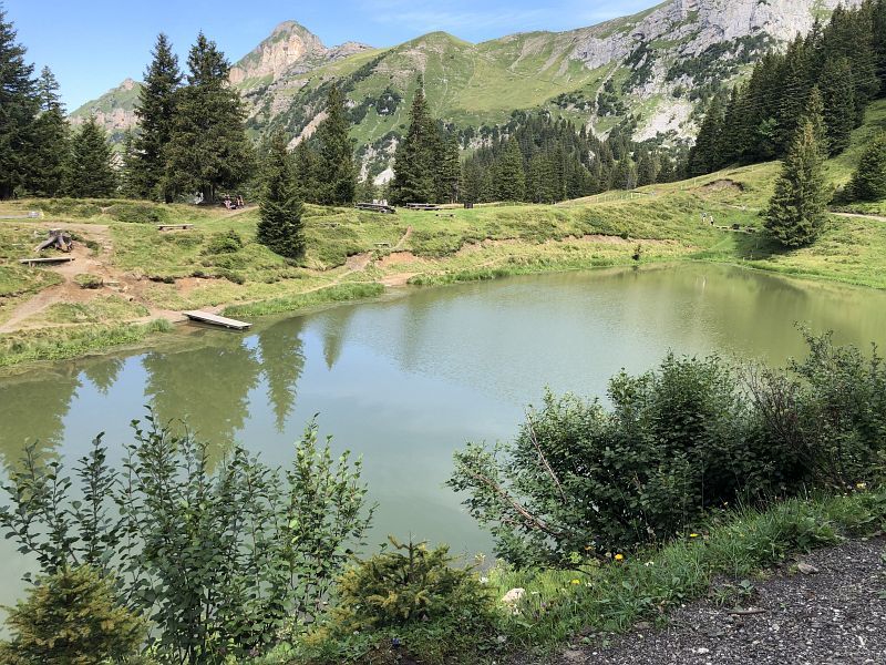 Ein Bad in einem idyllischen Bergsee zu nehmen, wäre eine verlockende Aussicht. Am Fleschsee könnte dies möglich werden, daher fand die Badehose auch noch Platz in meinem Rucksack. Beim See traf ich auf ein Paar, die mir gleich vorschwärmten, wie erfrischend ihr Bad grad war, also zögerte ich nicht lange und machte es ihnen gleich. Ich hatte ja an diesem Tag keine Eile und konnte mir somit einen längeren Aufenthalt am See gewähren.