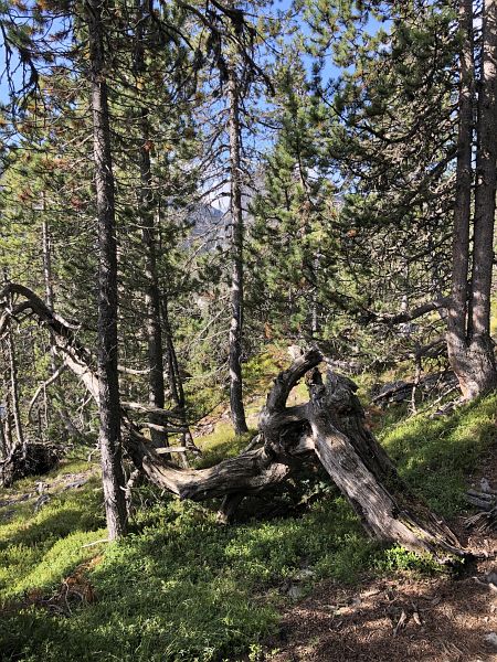 Ein sonniger Tag stand bevor, der Bus war auch entsprechend gut belegt. Vallun Chafuol ist einer der ersten Haltestellen am Ofenpass (P3) und ich war die Einzige, die da ausstieg. Ja mir solls nur recht sein, so durfte ich ganz lange die Stille im Wald geniessen bevor mir erstmals jemand begegnete. Wildtiere bekam ich aber trotzdem nicht zu sehen, nur Vögel waren gut zu hören, wie sie ihre Warnrufe ausstossen.