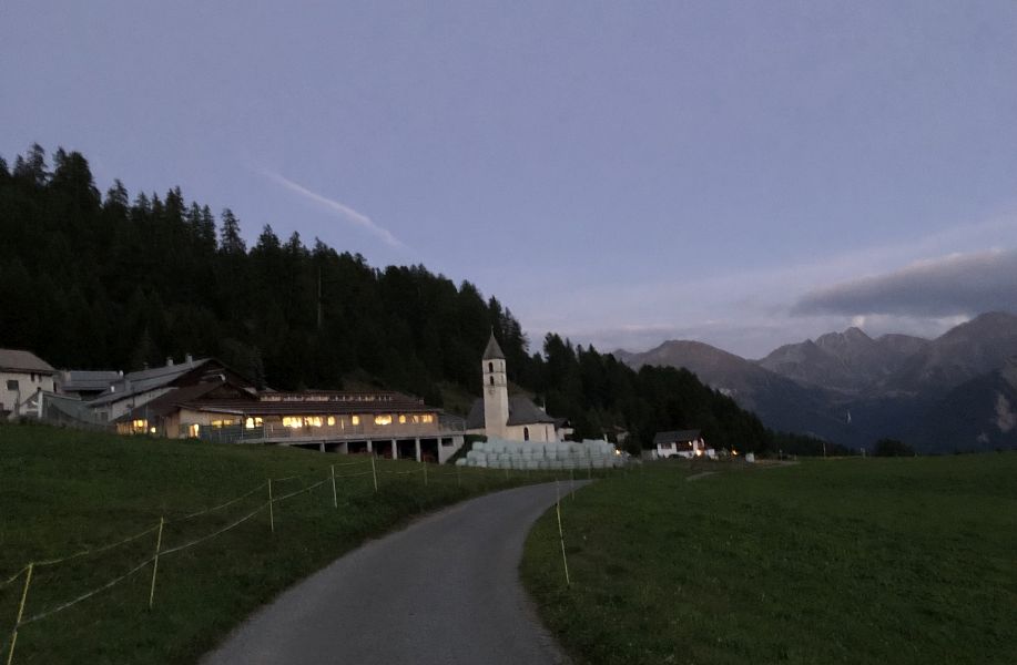 Bevor man zur Abzweigung Costainerpass gelangt und dann aber entlang dem breiten Kiesweg nach Lü weiter läuft, bietet sich ein Halt im urchigen Bergbeizli Alp Campatsch an. Auch das restliche Stück Weg hat dann durchaus noch seinen Reiz, bis man Lü erreicht und Busanschluss hinunter ins Tal hätte. Eine hervorragende Einkehr- und Übernachtungsmöglichkeit bietet die Pension Hirschen in Lü an. Davon habe ich bereits im Jahr 2019 Gebrauch gemacht und nun gleich noch einmal.