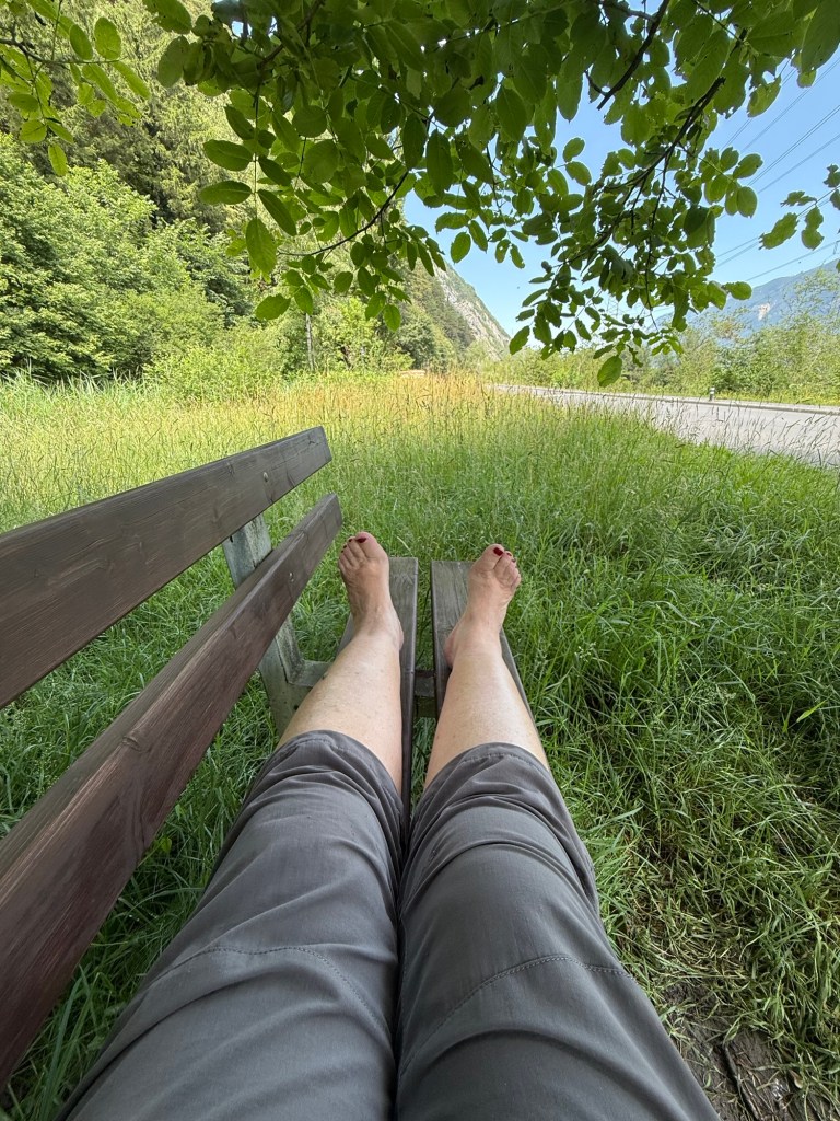 Nach einer längeren Pause, auf einer Bank im Schatten, verblieben noch dreissig Minuten Weg bis Erstfeld, meinem Ziel für den ersten Tag.