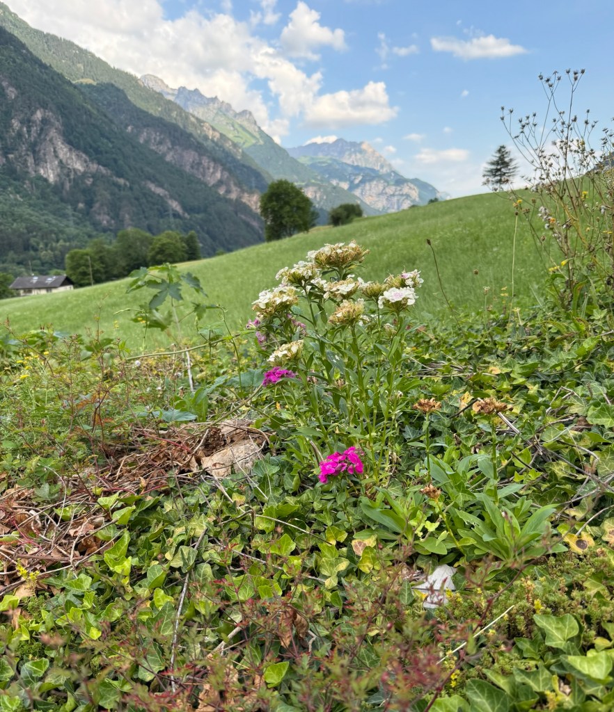 So lief ich zügig weiter, immer nach einem allfälligen Unterstand Ausschau haltend, sollte doch noch ein Platzregen folgen. Dafür reichte es mir auf einen früheren Bus, der mich in wenigen Minuten nach Intschi zurückbrachte.