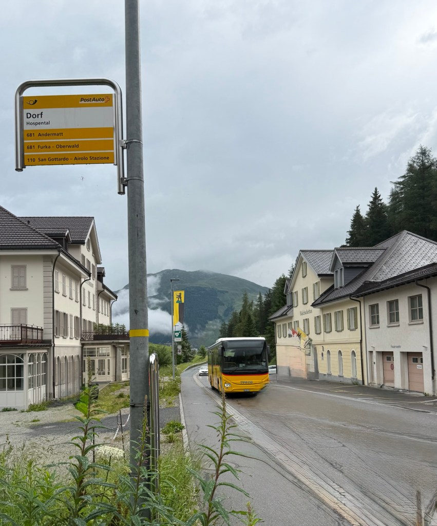 (Im Zusammenhang mit einer Mehrtageswanderung entlang der Via Gottardo kam ich am Vortag per Zug von Andermatt nach Hospental. Von Hospental Dorf brachte mich das Postauto zur Gotthard Passhöhe und am nächsten Tag hinunter nach Airolo)