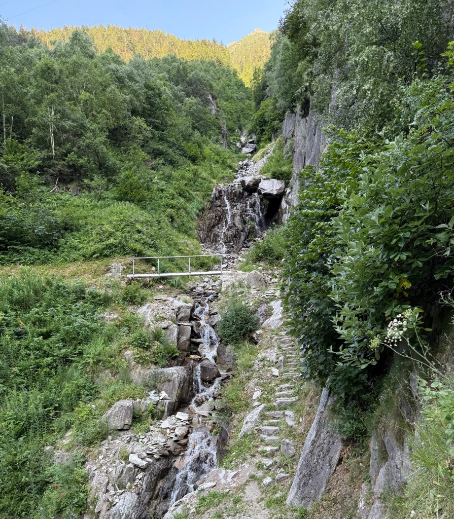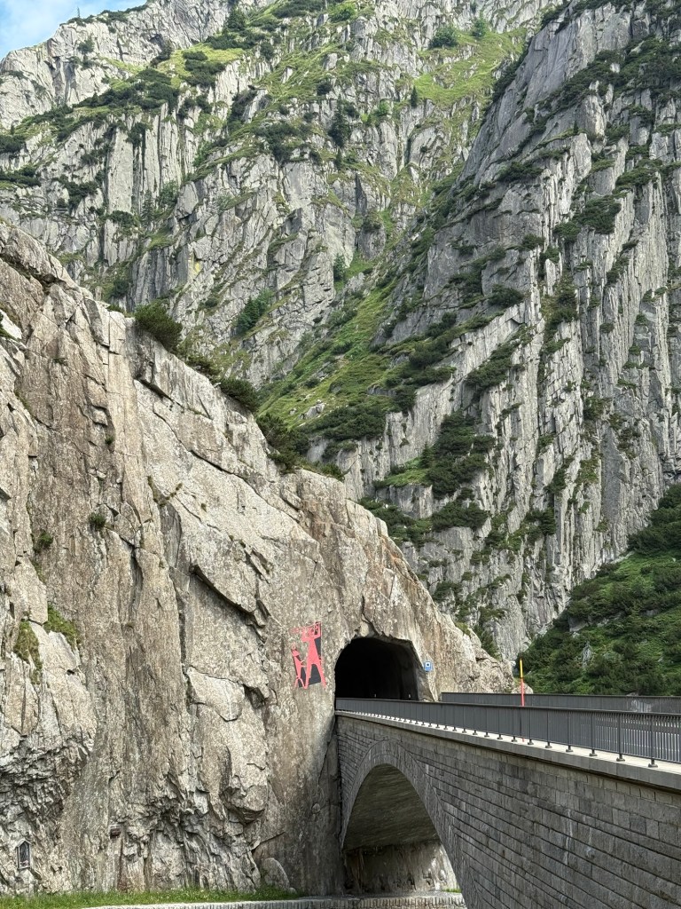 Für Fussgänger führt eine Treppe im Mauerwerk vor dem Tunnelportal nach oben auf die Schutzgallerie und danach ist Andermatt in etwa zwanzig Minuten erreicht.