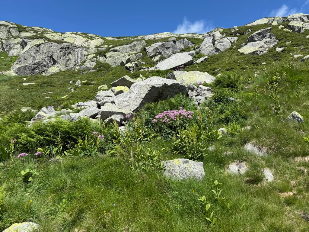 Es ist Alpzeit und der Wanderweg sieht auch entsprechend aus – zertrampelt und verschissen 😫. Genau für solche Fälle sind Gamaschen nützlich, damit die Hosenbeine trotzdem sauber bleiben. Natürlich nützen diese auch bei nassem Gras, da die Tessiner die Wanderwege nicht so vorbildlich mähen.