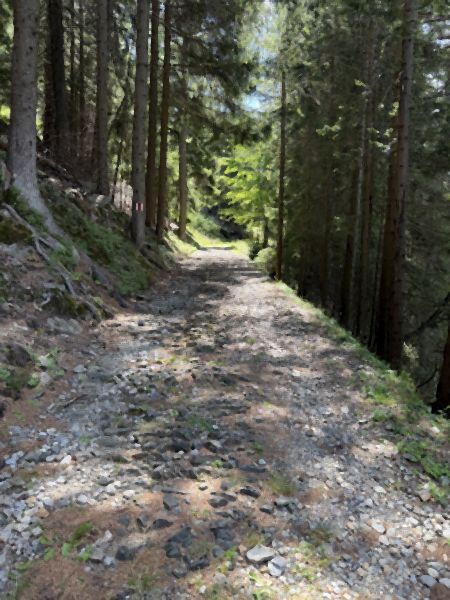 Zuerst führt der Weg stetig leicht aufwärts, und immer wieder folgt ein längeres Stück auf schönen Naturwegen. Genüsslich nehmen wir die verschiedenen Waldgerüche auf.