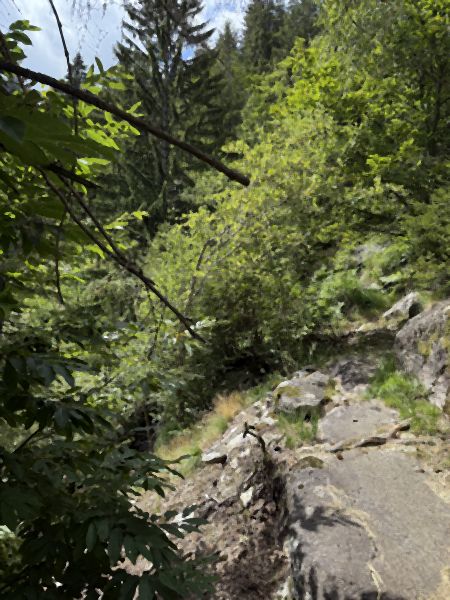 Als ich dann an eine Stelle am Bach mit einem kleinen Wassertümpel kam, konnte ich nicht widerstehen, zumindest meinen Füssen ein kurzes erfrischendes Bad zu gönnen. Das Wasser war jedoch sehr kalt. Ich blieb noch eine Weile auf einem Stein sitzen und genoss die Umgebung mit den Geräuschen des Wassers im Ohr. Bis Osco war es nicht mehr weit und das letzte Stück führt entlang einer Fahrstrasse. Ich setzte mich nochmals auf eine Bank und blickte ins Tal. Bis zur Abfahrt des Buses verblieb noch etwas mehr als eine Stunde. Was mache ich noch mit dieser Zeit.