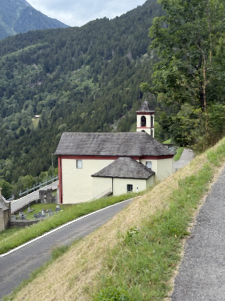 In Osco gibt es noch ein Restaurant, das zumindest Getränke und Glacé Kübeli im Angebot hat. Die Zeit reichte auch noch für einen kurzen Besuch der Kirche und danach setzte ich mich auf die Bank bei der Haltestelle und wartete. Der Kleinbus kam pünktlich und brachte mich in wenigen Minuten nach Faido hinunter.