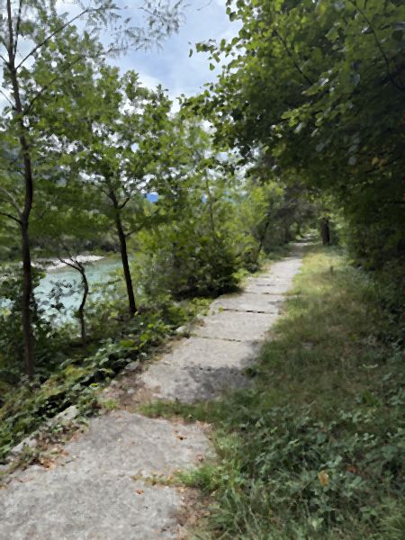 Dem Uferdamm entlang gehend nimmt man die Geräusche der Autobahn kaum wahr. Der Uferdamm ist mit grossen Granitplatten belegt, führt fast komplett am Waldrand entlang und es ist schön schattig. Das Wegstück empfand ich auch nie langweilig.